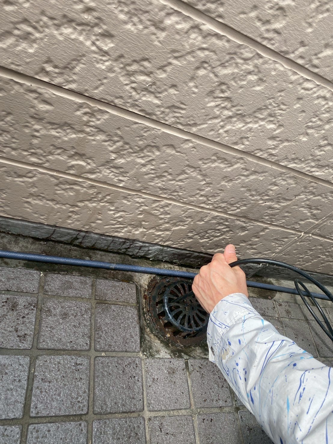 大和市内のアパートにて、長年メンテナンスが行われていなかった外部排水管の高圧洗浄作業を実施しました。